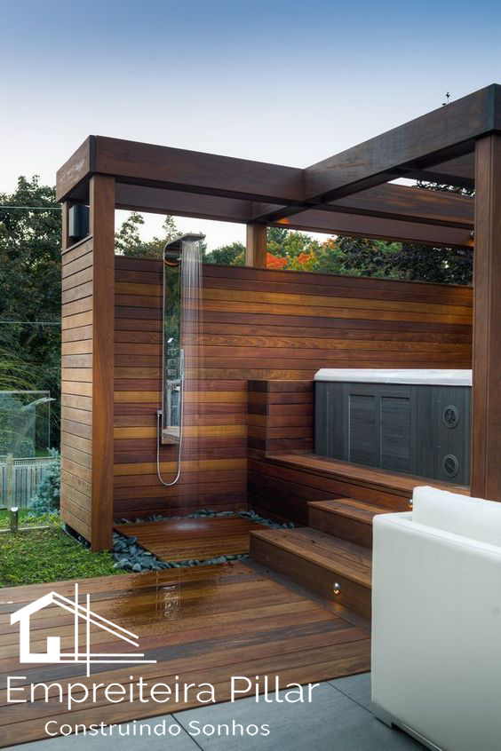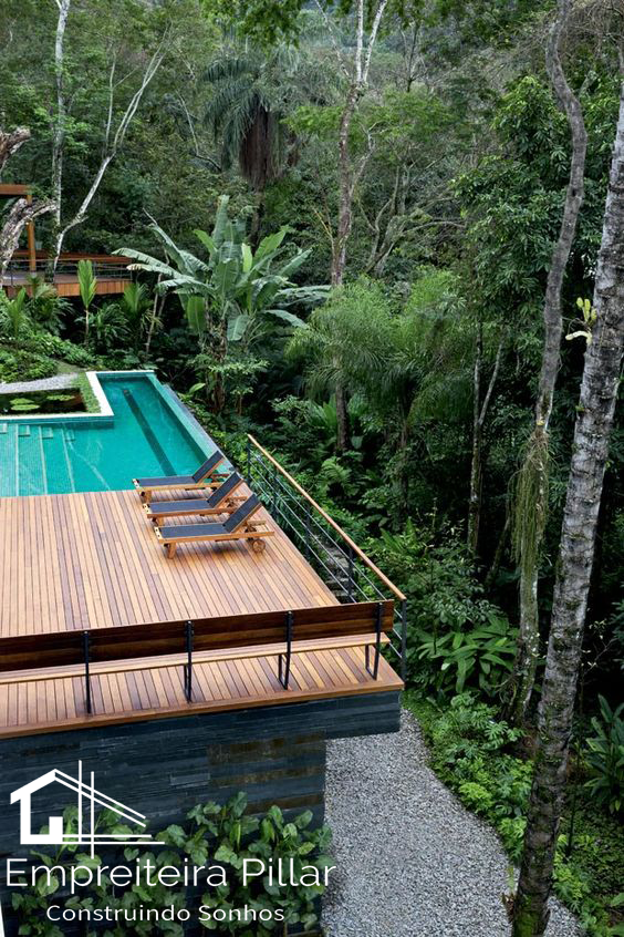 Deck é um lugar feito para relaxar, receber seus convidados e a decoração pode seguir uma linha mais despojada ou rústica, vai depender do seu gosto.