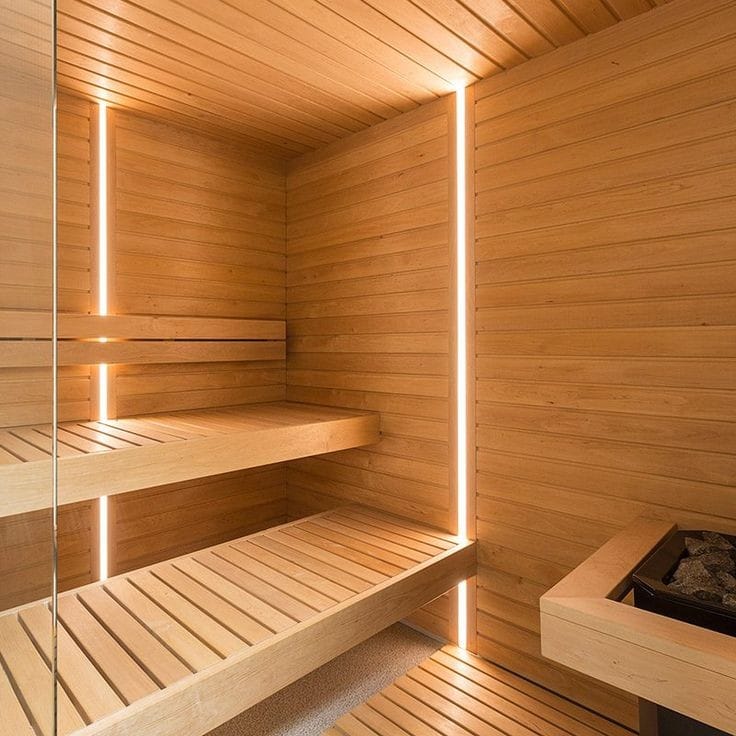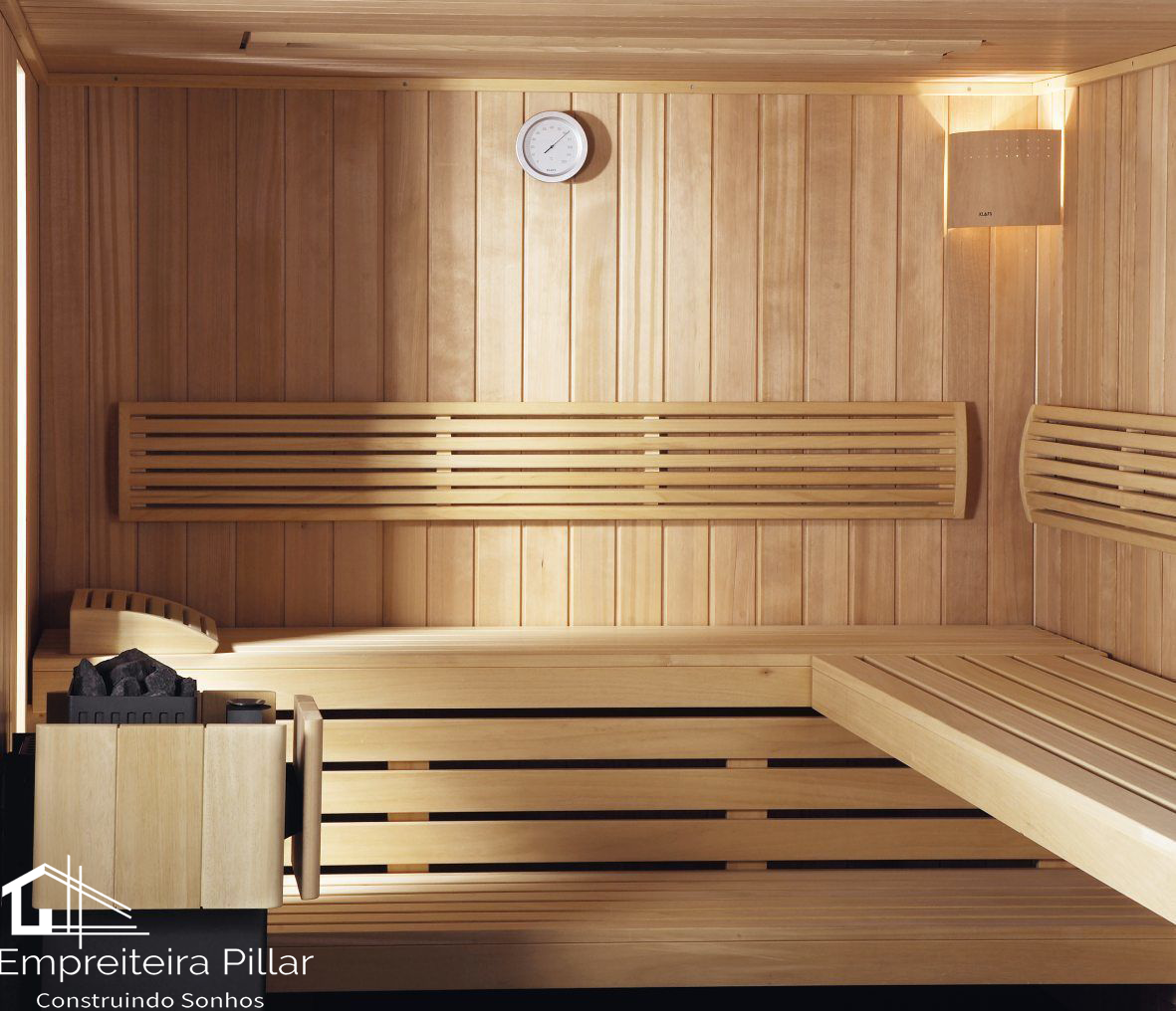 Não importando tamanho ou localização a Empreiteira Pillar reveste sua sauna com precisão, elegância e ótimo acabamento. Revestimentos para sauna com a técnica de lambris macho e fêmea. Arquibancadas em dois níveis com encosto e placas modulares.